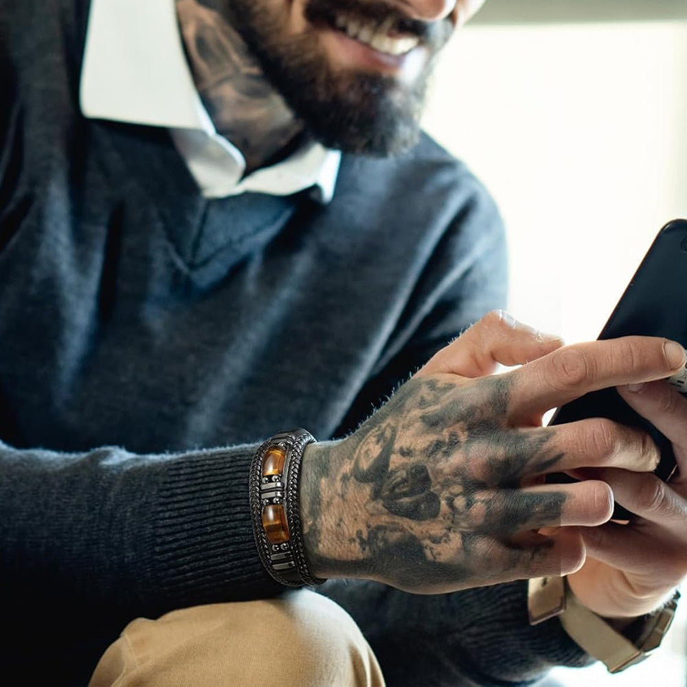 For The Bold & Confident – A Bracelet That Speaks To Your Spirit Tired of generic men’s accessories that lack meaning? Our natural tiger eye stone bracelet blends raw masculinity with powerful healing energy. Handwoven black leather + genuine tiger eye stones – it’s not just jewelry; it’s a daily reminder of your courage, and a stylish staple that ages like fine wine.